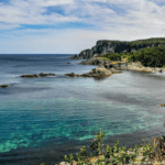 This path’s main attractions include Brigus South, a side trail to Turtle Island, the Hares Ears rock formation at Hares Ears Point, and high cliff views around Brigus Head. Herring Cove Beach is sandy, and can be reached with caution; however, it is a hard scramble back up to the trail. Tar Cove has a cobblestone beach; however, the meadow is usually too wet for picnicking. During June and July, visiting finback, humpback, and minke whales circle Brigus Bight, using their natural net shape to trap caplin. Limited facilities are available in Brigus South. Facilities and services are available in Cape Broyle (opposite Admirals Cove).